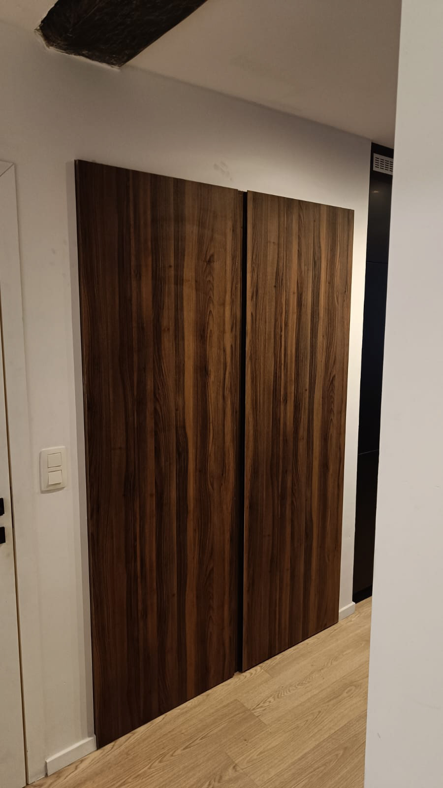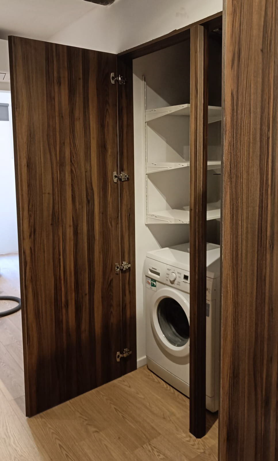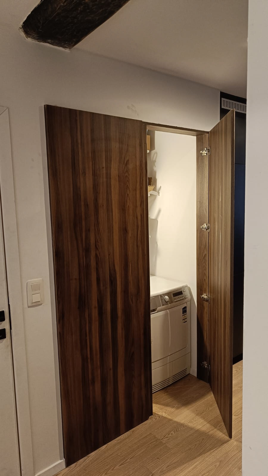 Kastdeuren in donkere walnoot voor wasplaats
