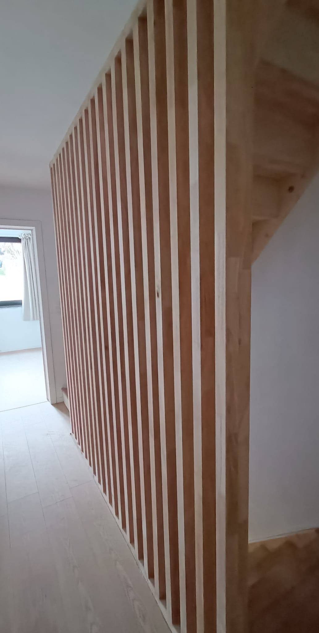 Balustrade in rubberwood op overlooop